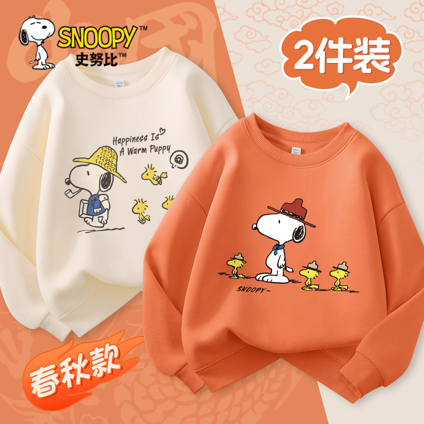 史努比童装男童卫衣2026新款潮酷春季衣服男大童时尚长袖儿童上衣