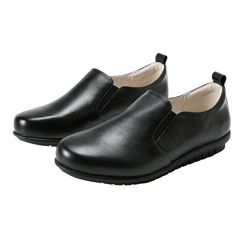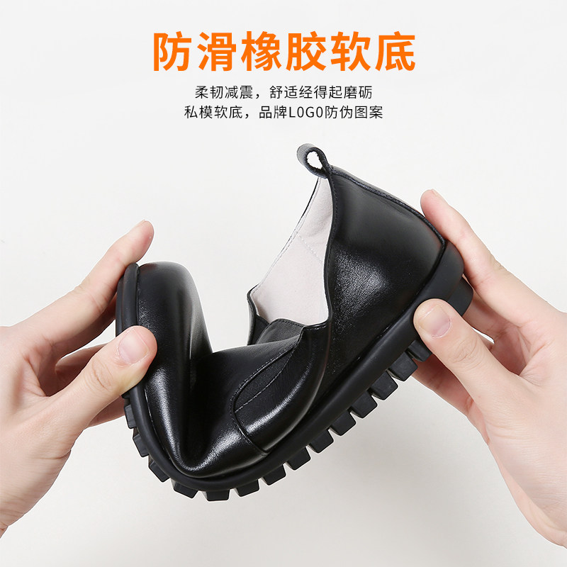 适航单鞋女冬季黑色软底舒适平底鞋头层牛皮职业小皮鞋系带工作鞋