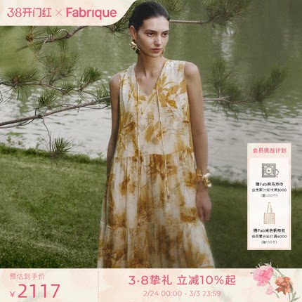 Fabrique浮光跃金 洒金丝绒真丝桑蚕丝印花烧花V领连衣裙25夏