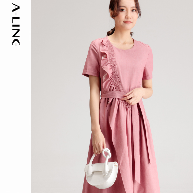 Aline/阿莱 时尚设计感不对称荷叶边连衣裙礼服裙