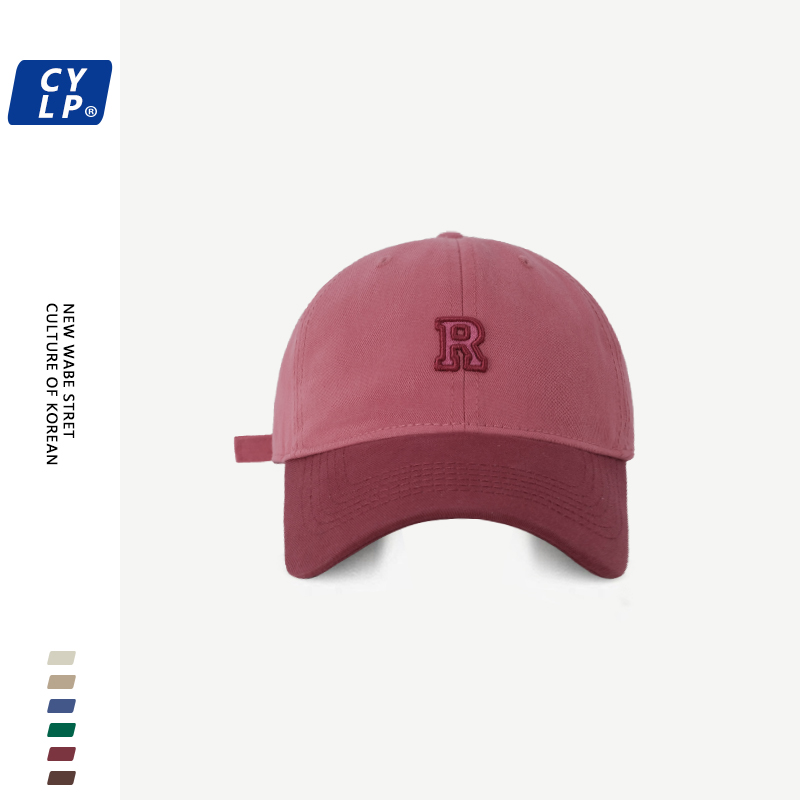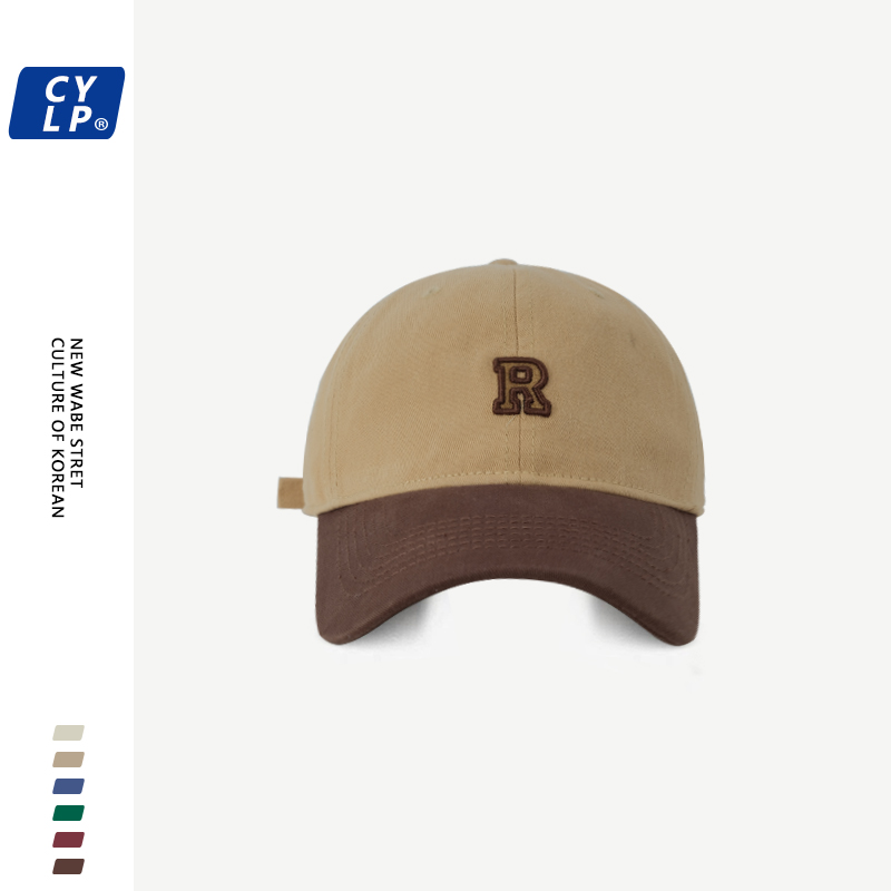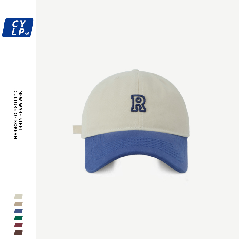 韩国新款潮牌R字母刺绣棒球帽男女韩版时尚撞色拼接鸭舌帽显脸小