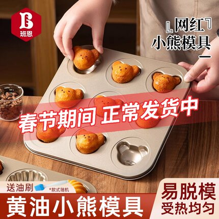 黄油年糕小熊模具不粘栗子贝壳玛德琳板栗12连模蛋糕烘焙烤盘烤箱