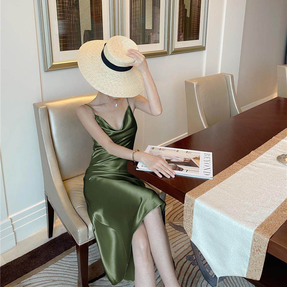 新品UMA MARA法式高级感真丝睡裙女性感显瘦中长款吊带睡衣居家裙