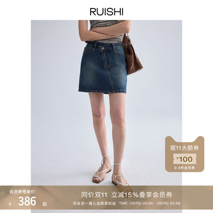 RUISHI芮时 进口牛仔面料斜裁显瘦a字短裙牛仔半身裙女夏