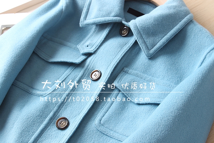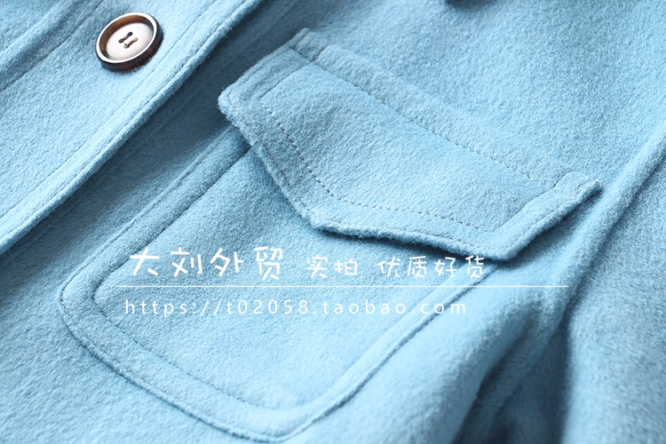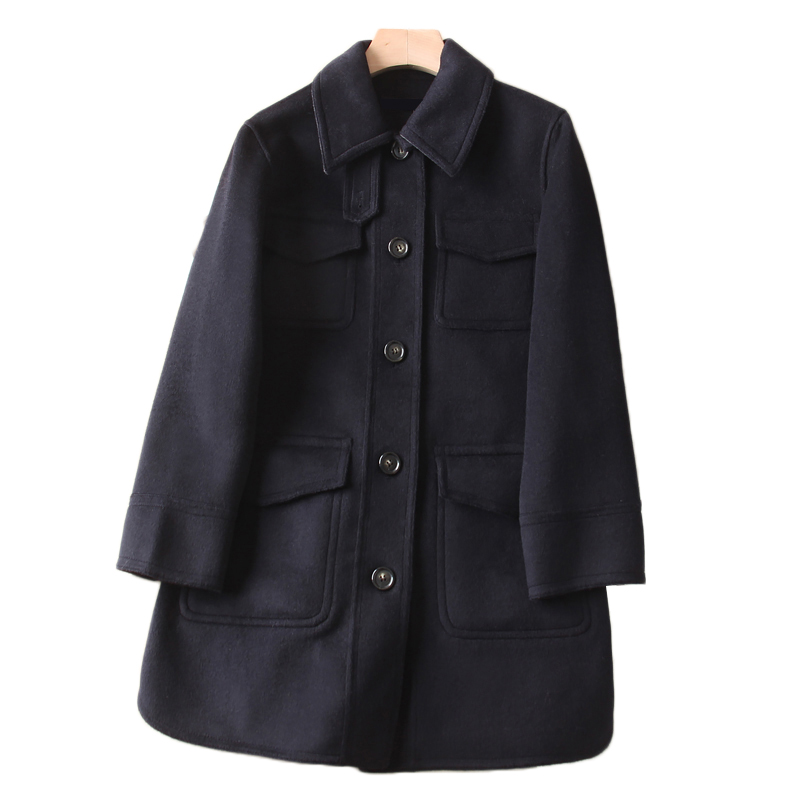 韩国单!羊毛混纺单排扣百搭中长款大口袋小翻领毛呢外套 大衣女