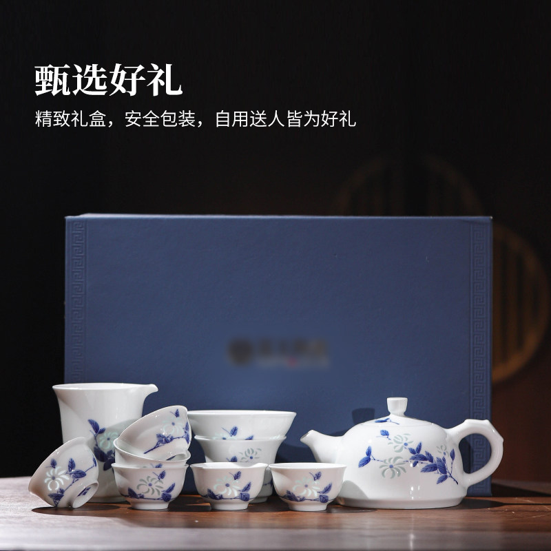 景德镇官方陶瓷茶具手绘青花玲珑茶杯喝茶茶壶套装2026新款