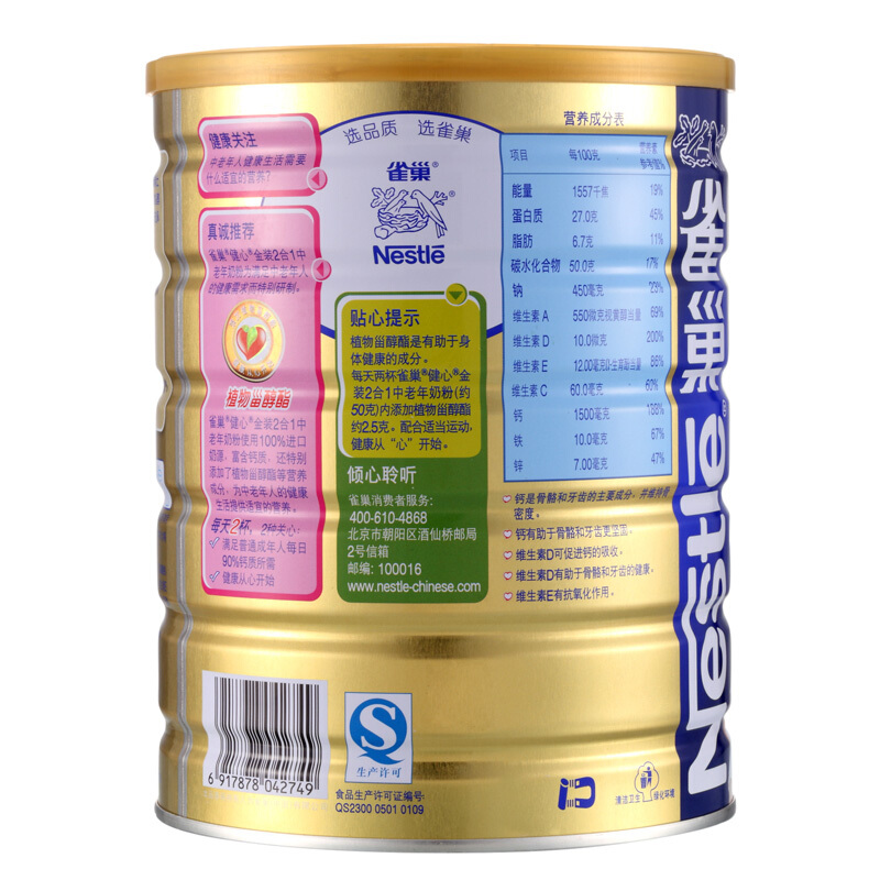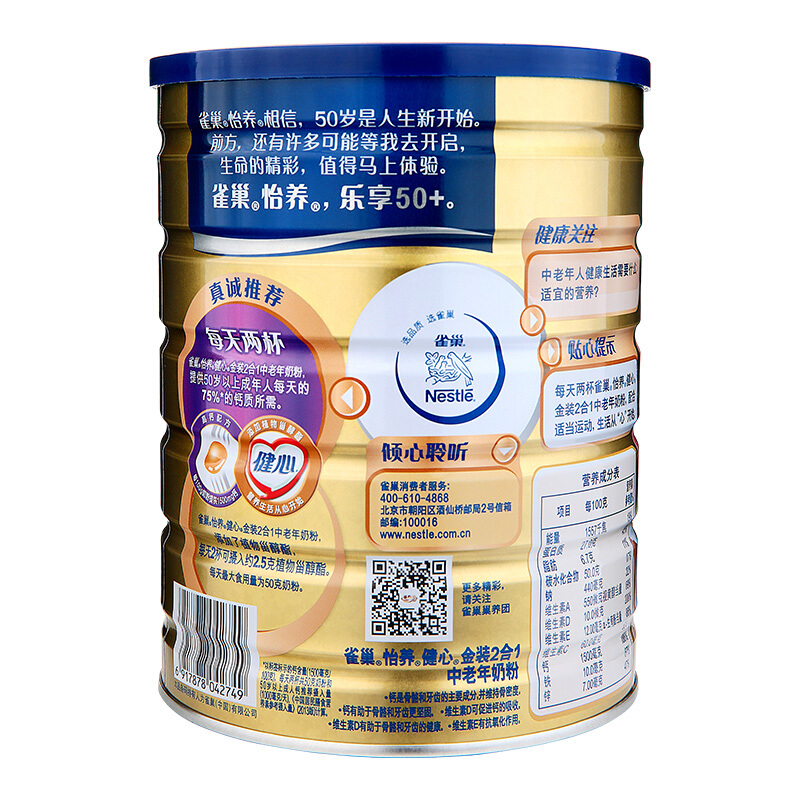 雀巢怡养健心金装2合1中老年中老年人奶粉 800克/罐成年