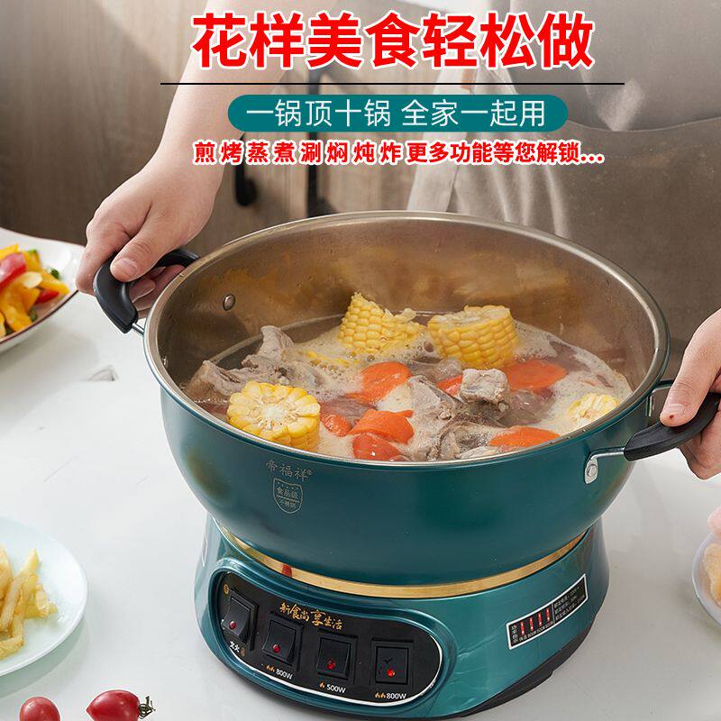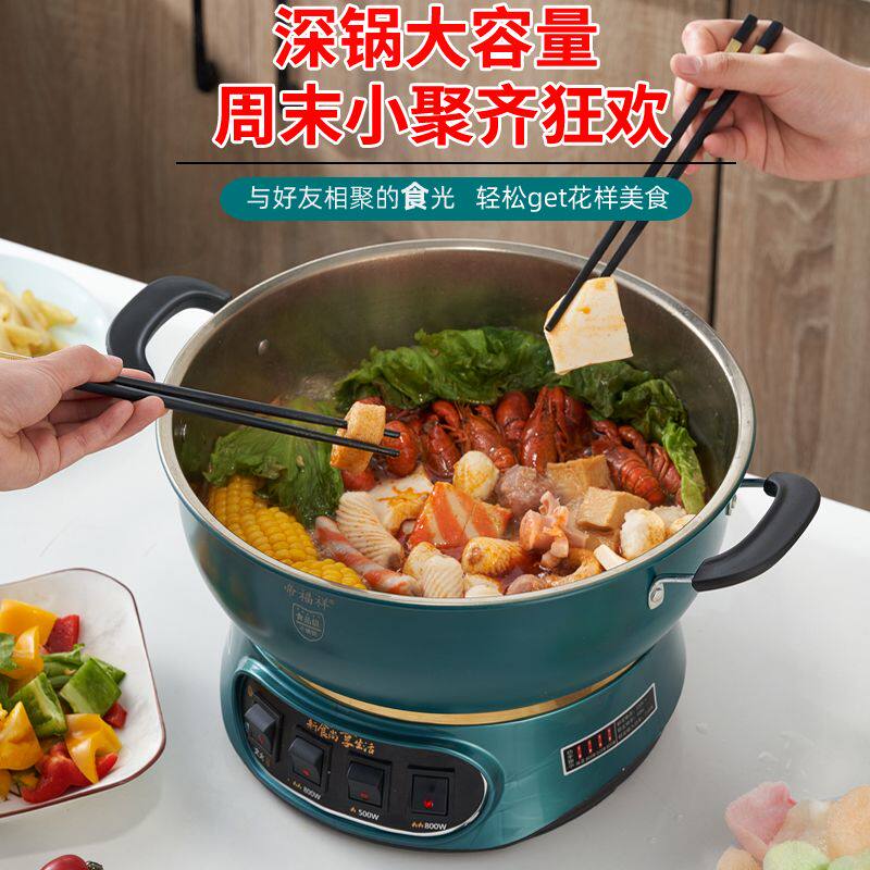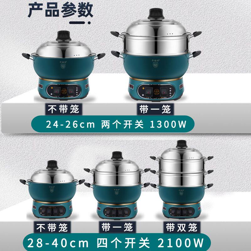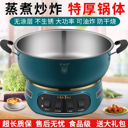电炒锅多功能电热锅家用电锅加厚蒸煮一体宿舍电煮锅电蒸锅电火锅