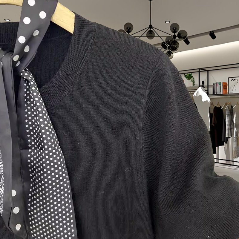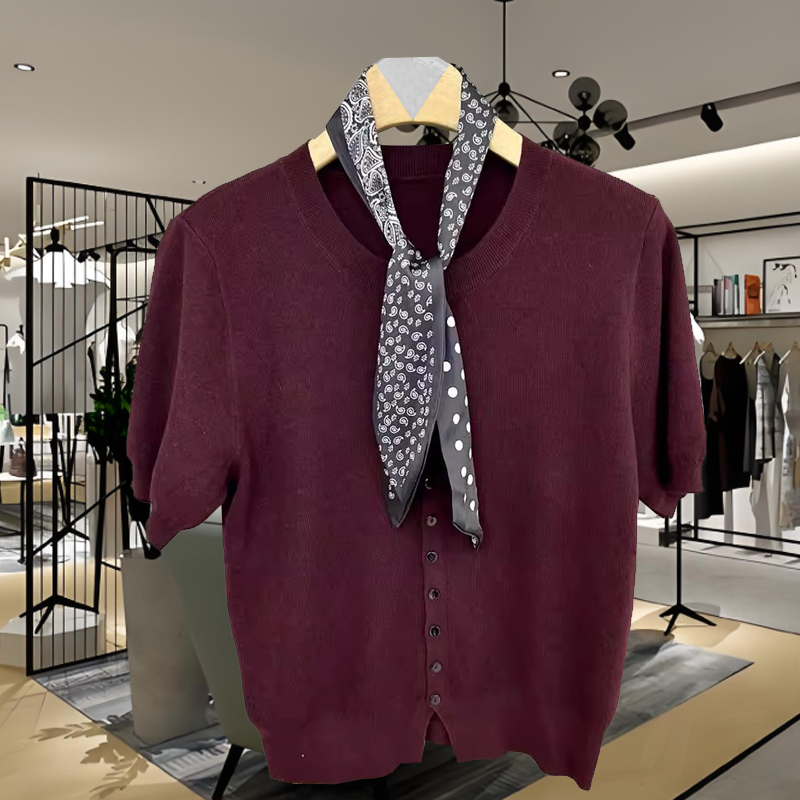 YJ-96早秋2025新时尚圆领短袖针织衫女配丝巾气质百搭减龄