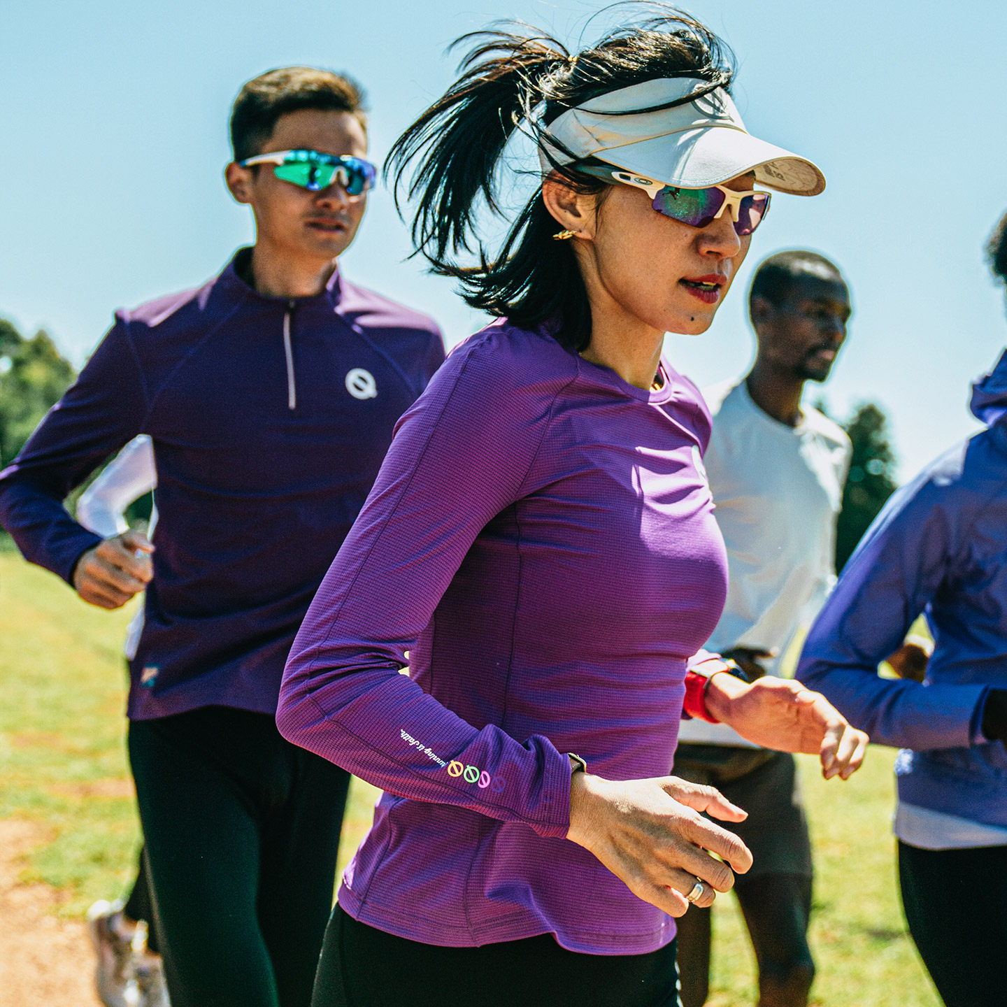 轻功呼吸方格交叠领速干长袖女款