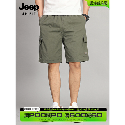吉普五分短裤男2025夏季新款宽松直筒透气薄款百搭纯棉男士裤子