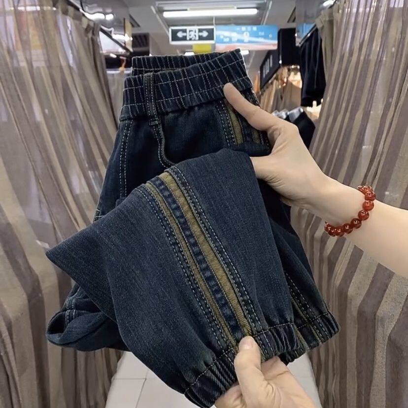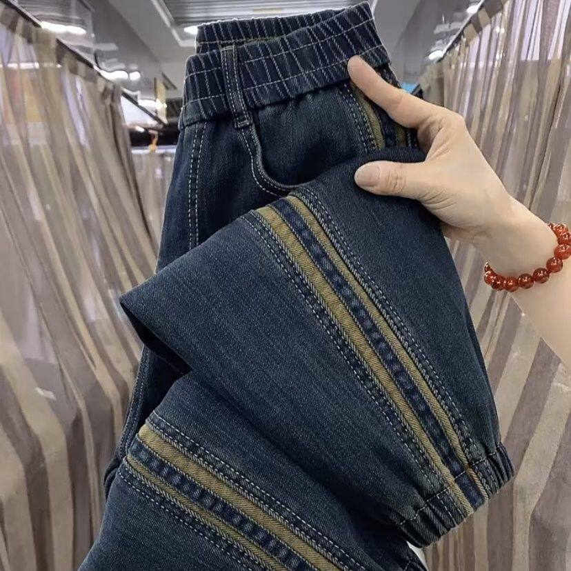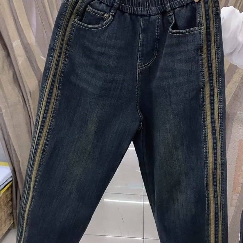 小众欧货新款加厚加绒弹力牛仔束脚裤女宽松显瘦哈伦九分马丁靴裤
