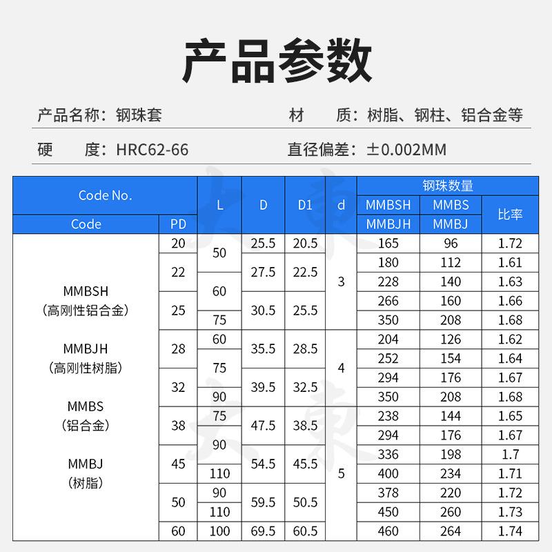 滚珠导柱导套滚珠钢球保持架滚珠衬套40×70铝合金钢珠套模具配件