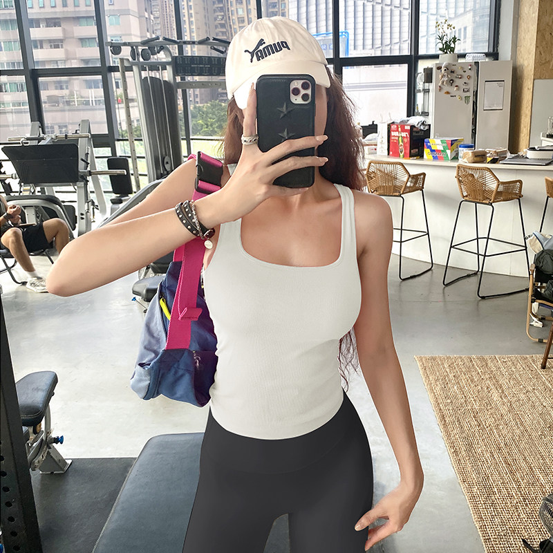 岚纹宽肩带瑜伽背心女一体式健身文胸收腹显瘦跑步运动内衣外穿夏
