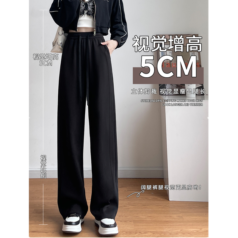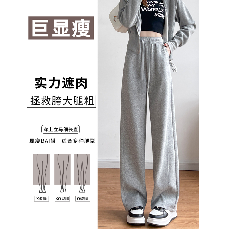 加绒加厚高腰韩版运动阔腿裤女秋冬大码显瘦宽松休闲梧桐直筒裤子