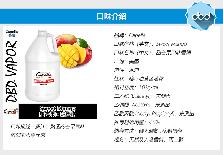 Capella卡贝拉美国DIY香精 Sweet Mango V2甜芒果V2口味液体香精