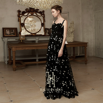 星空繁花HAUTE FANCIES后构想|黑色法式优雅立体蕾丝吊带连衣裙秋
