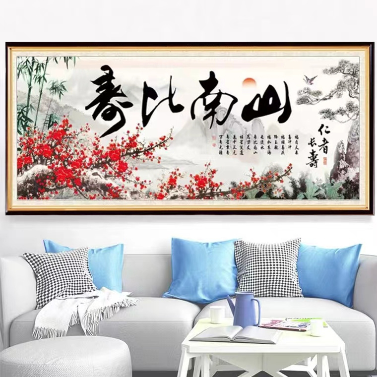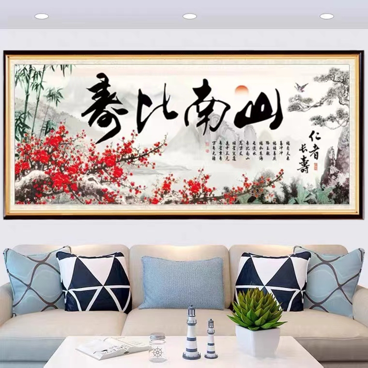 2025新款客厅卧室寿比南山钻石画十字绣现代家用大幅画送礼长辈