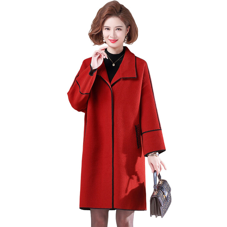 2025新款秋装外套中长款大码双面毛呢大衣中老年女装春秋过膝风衣