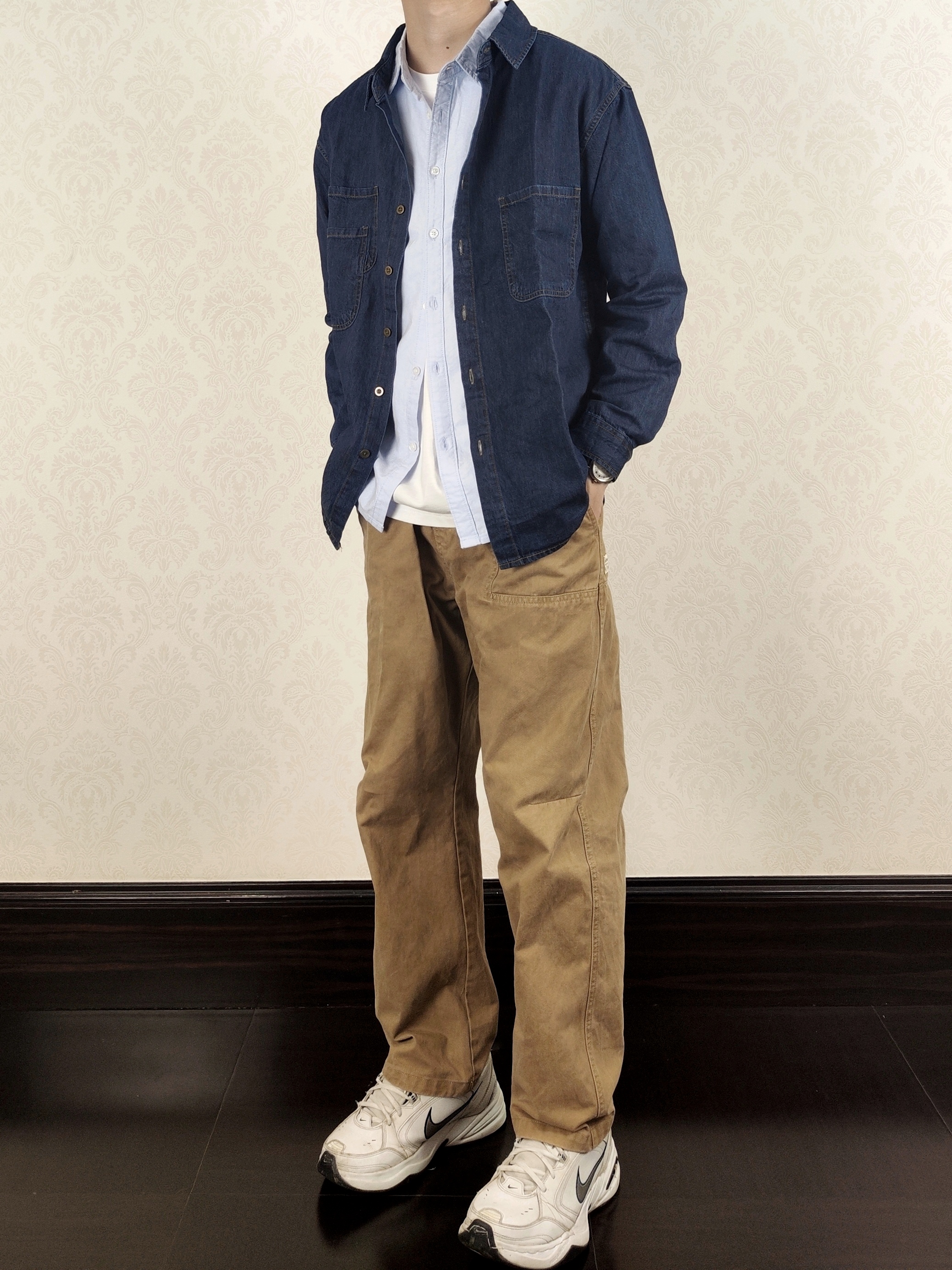 HMN Studio秋季薄款牛仔工装长袖衬衫潮牌男装ins风水洗休闲衬衣