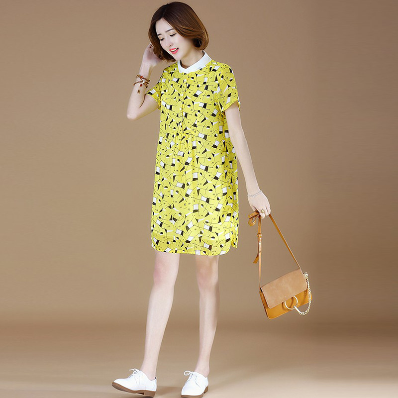 胖mm设计感裙子a字裙娃娃领宽松显瘦遮肚子大码碎花雪纺连衣裙女