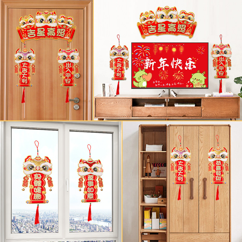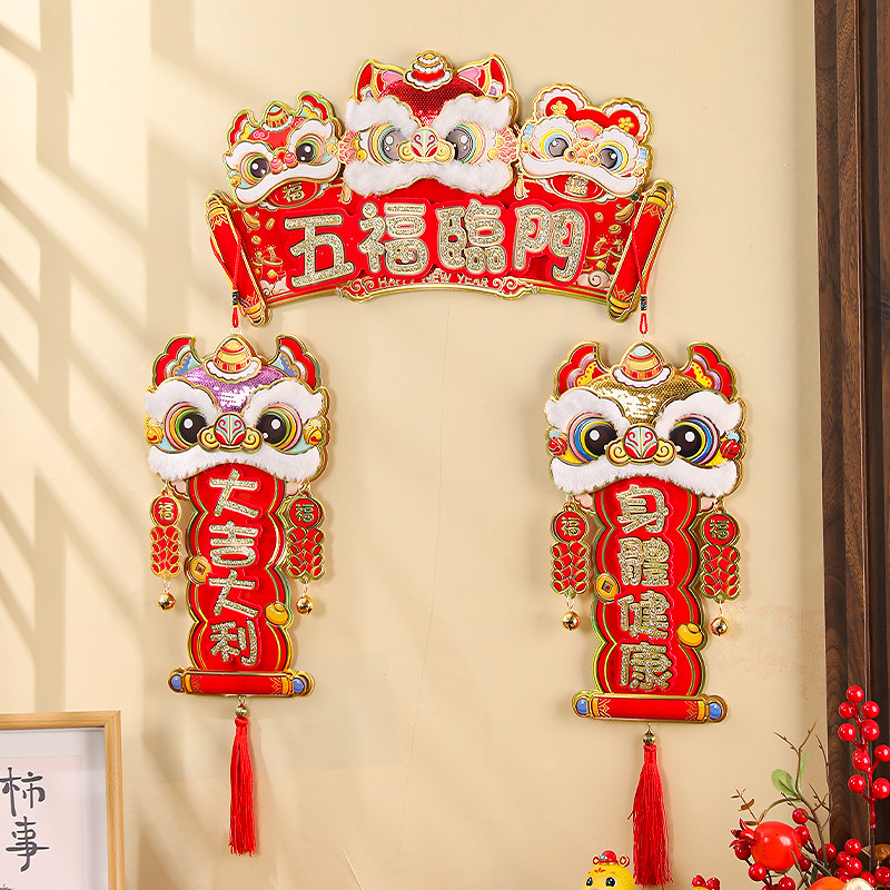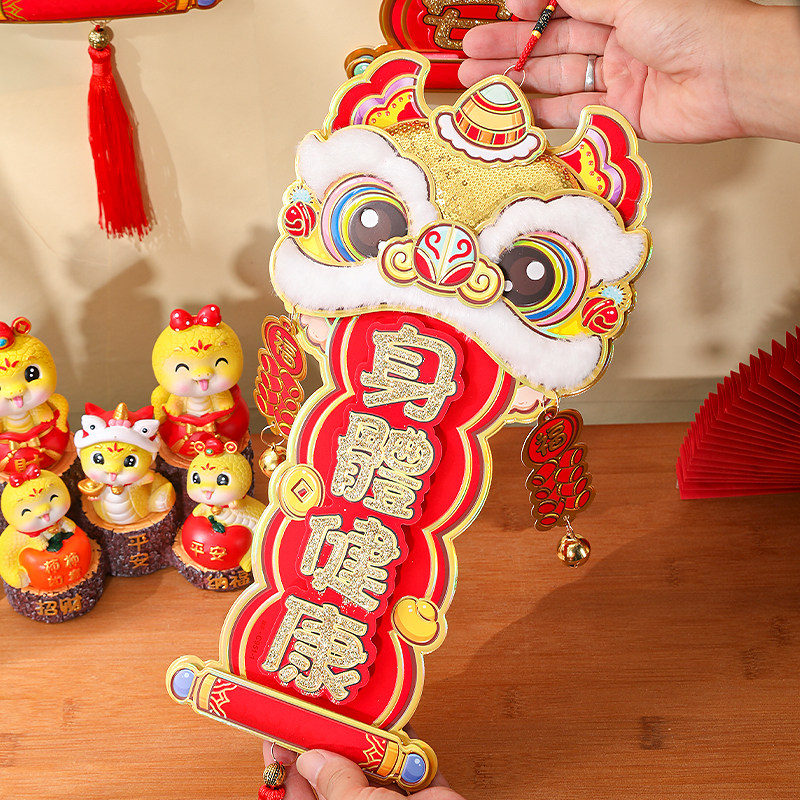 新年挂件2026马年醒狮四字挥春挂饰春节过年创意立体横批门对装饰