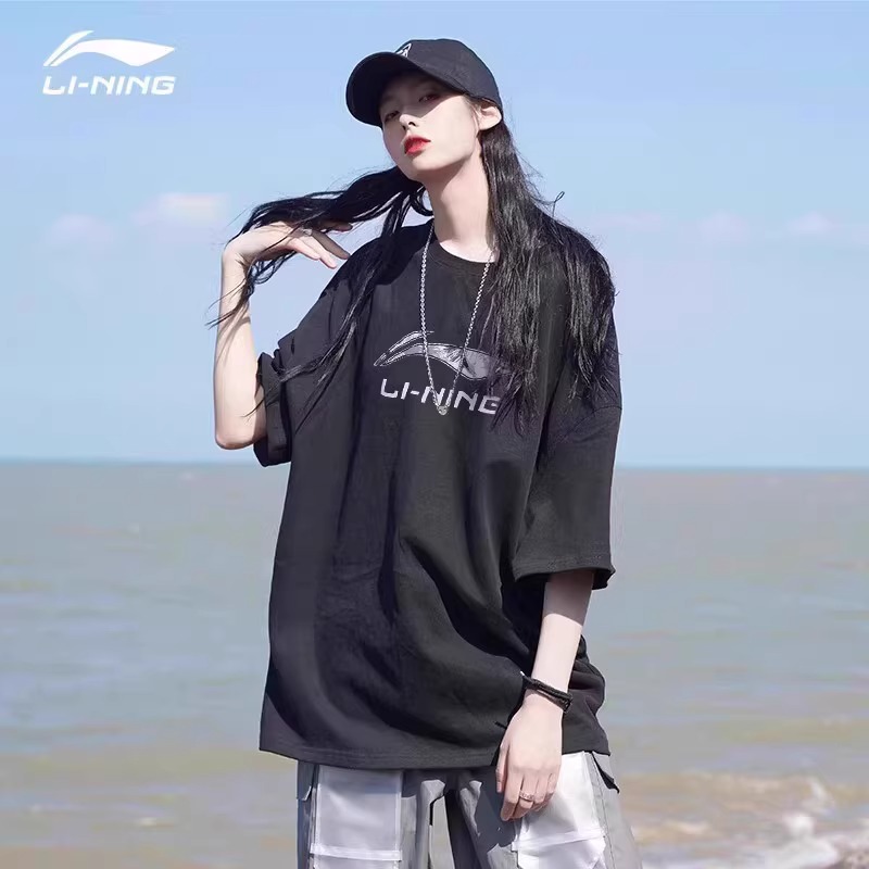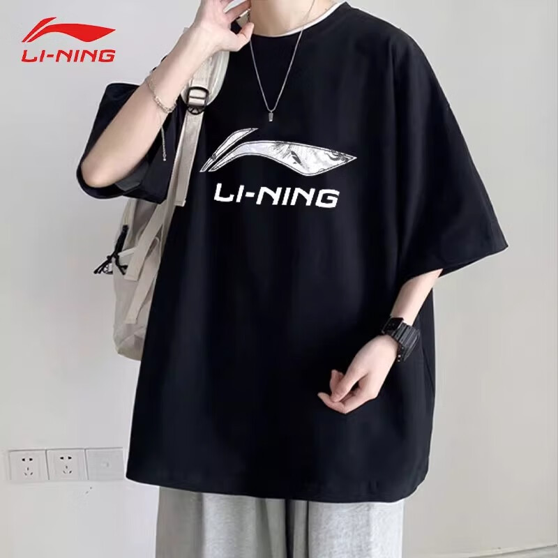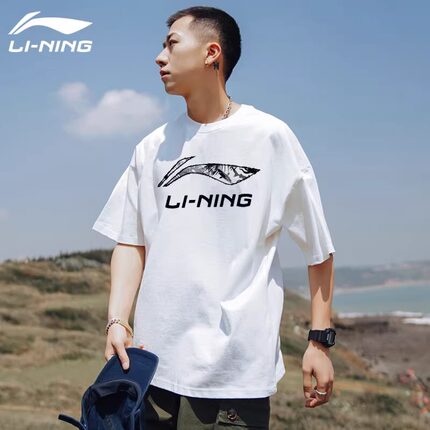 李宁短袖男夏季新款白色棉质半袖印花潮流宽松大码文化衫运动t恤