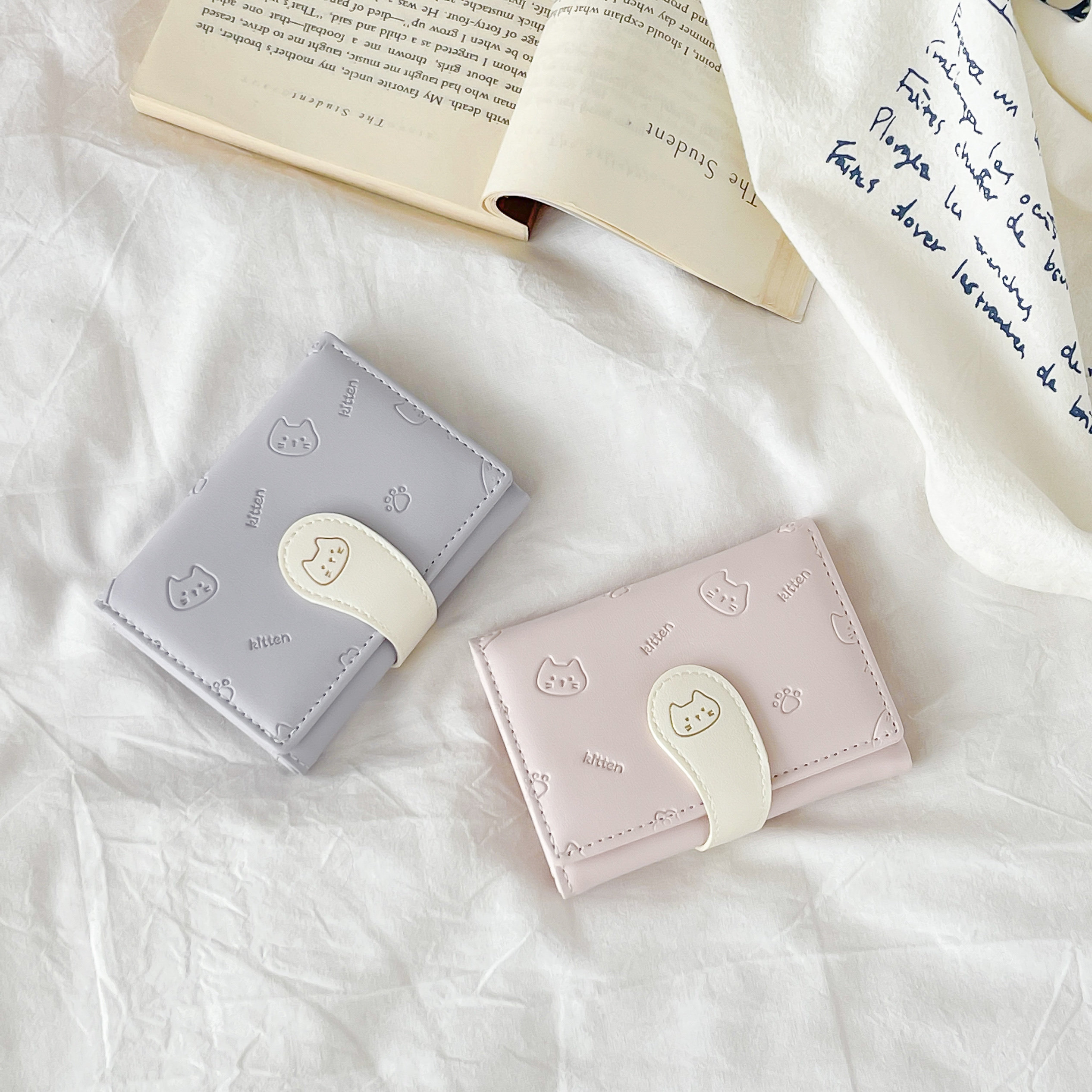 可爱卡通猫咪短款三折钱包女