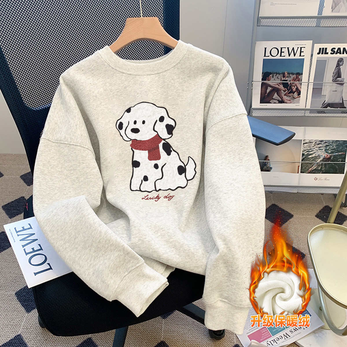 唐狮2026秋冬季加绒圆领卫衣女斑点狗印花设计感小众时尚套头卫衣