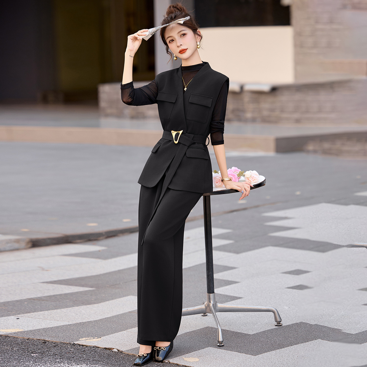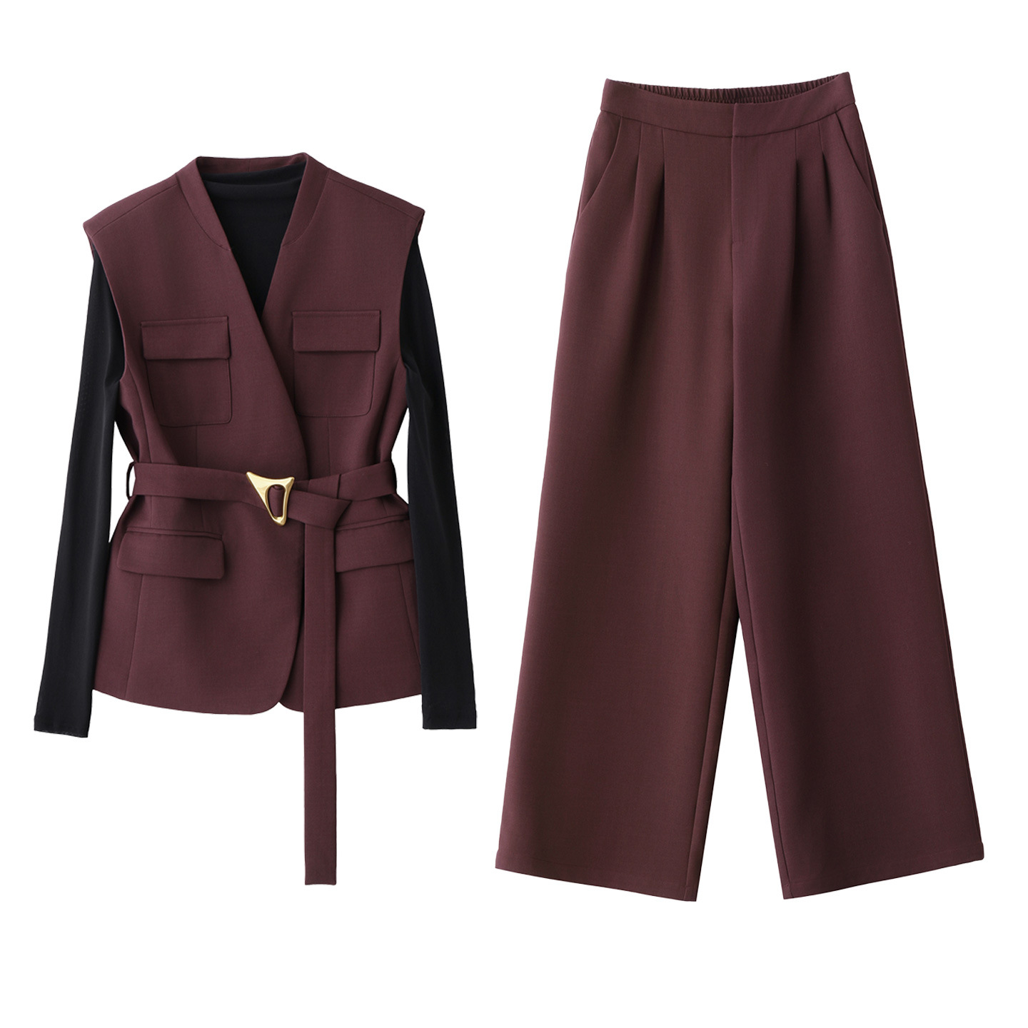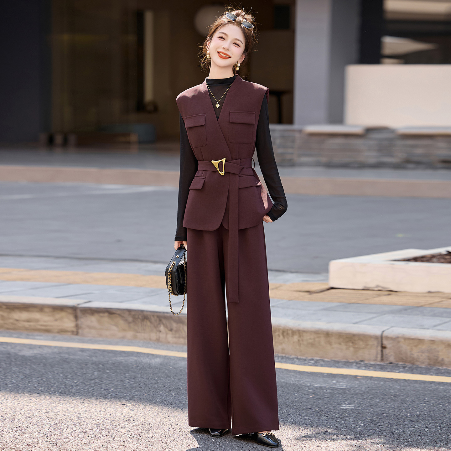女装时尚休闲套装2025秋季新款气质马甲针织衫阔腿裤三件套ME5318