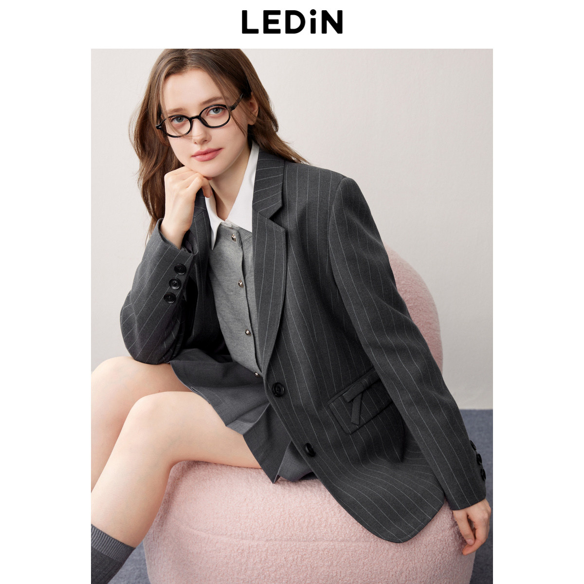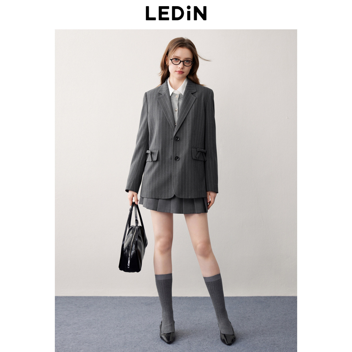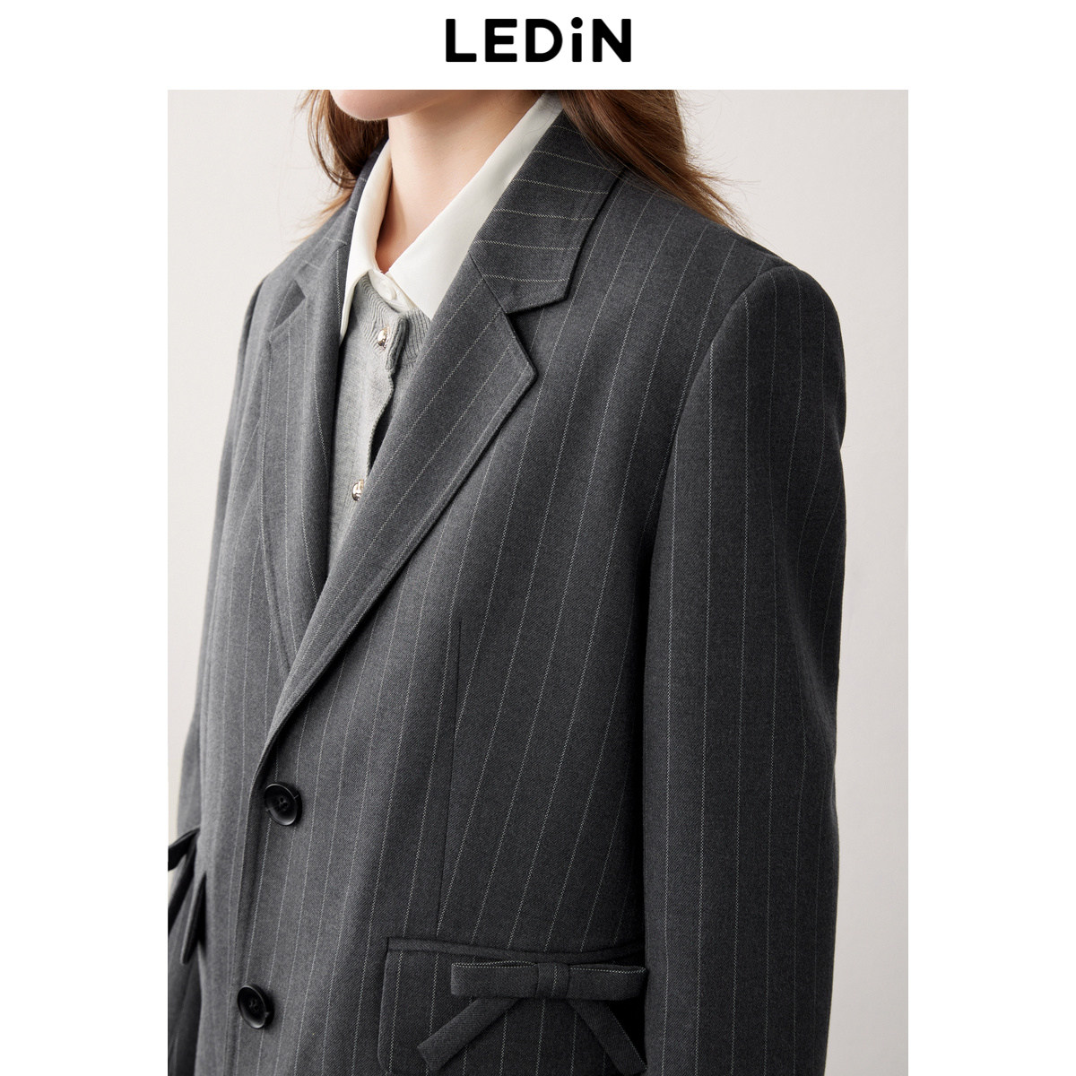 乐町格雷系廓形平驳领条纹西装外套秋季新款蝴蝶结设计感西服