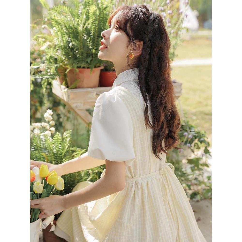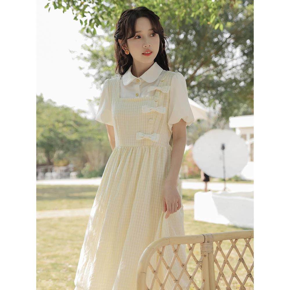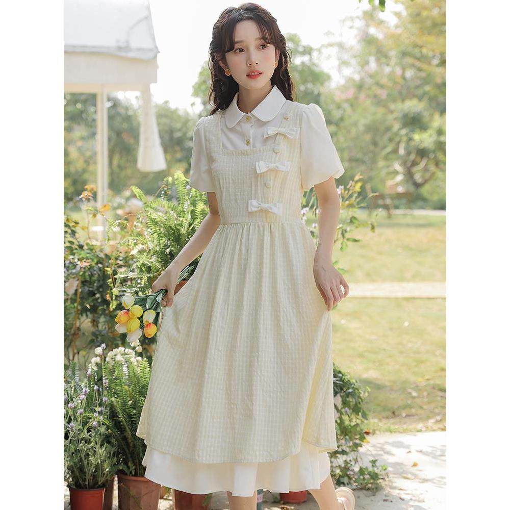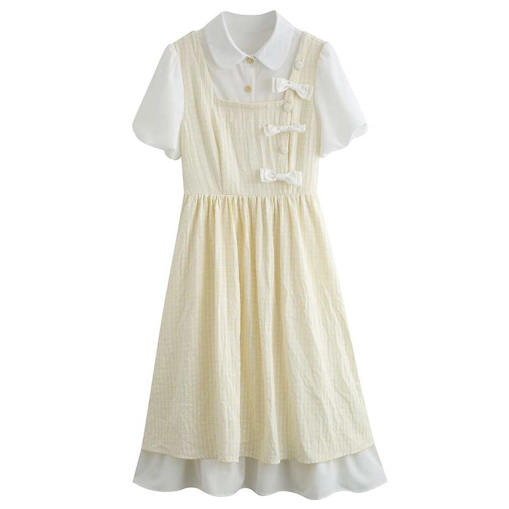 初高中学生学院风连衣裙少女装夏季2025新款法式小个子假两件长裙