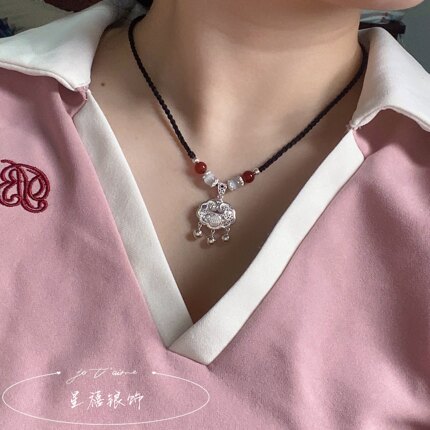 S999纯银平安锁项链女宝宝银锁吊坠足银长命锁轻奢闺蜜生日礼物