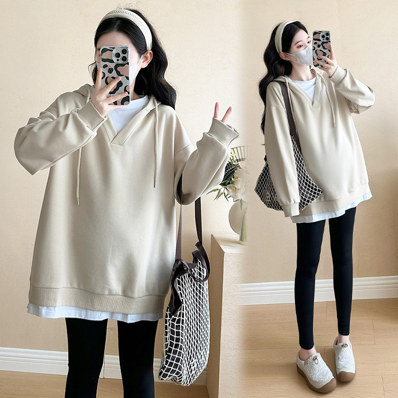 孕妇卫衣女春秋款假两件上衣
