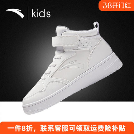 安踏儿童高帮板鞋冬季小白鞋