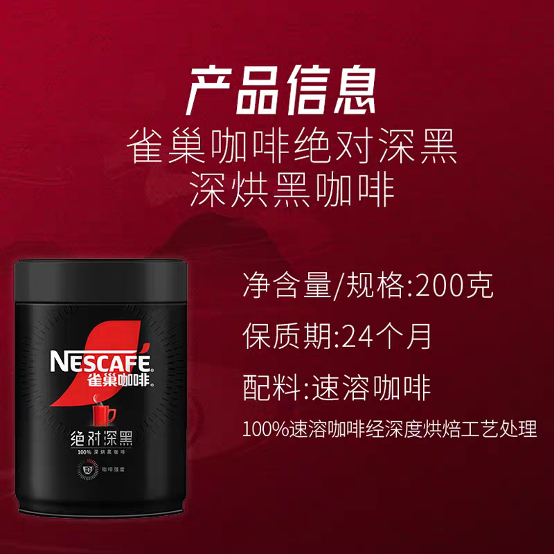 雀巢深黑咖啡200g美式提神学生速溶咖啡粉可冲100杯
