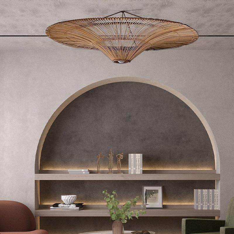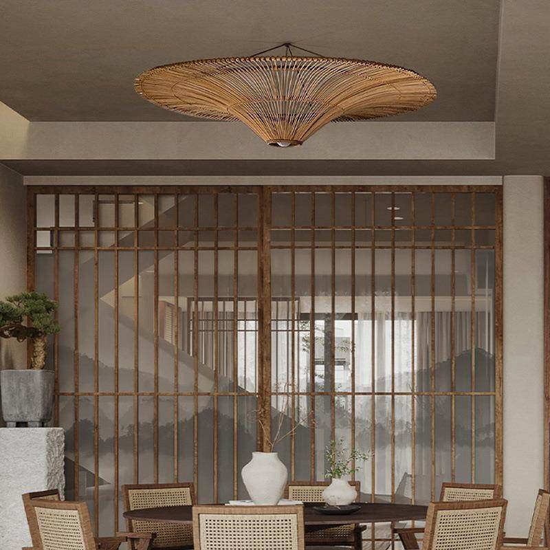侘寂风复古餐厅民宿卧室吊灯酒店客厅装饰东南亚风格藤编灯具藤艺