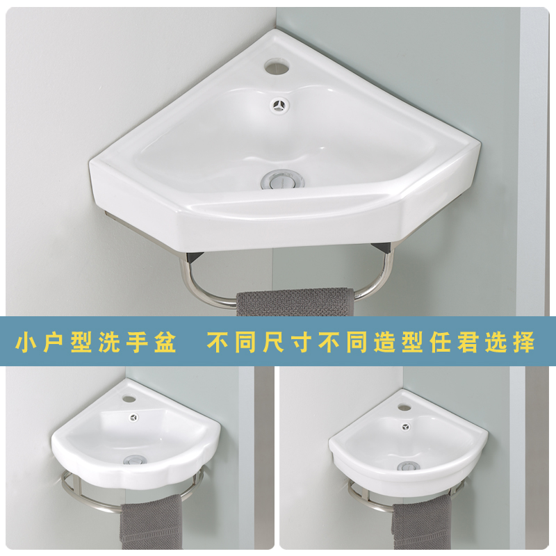 支架洗脸盆三角形面盆p墙角阳台迷你小户型挂墙式转角陶瓷洗手盆