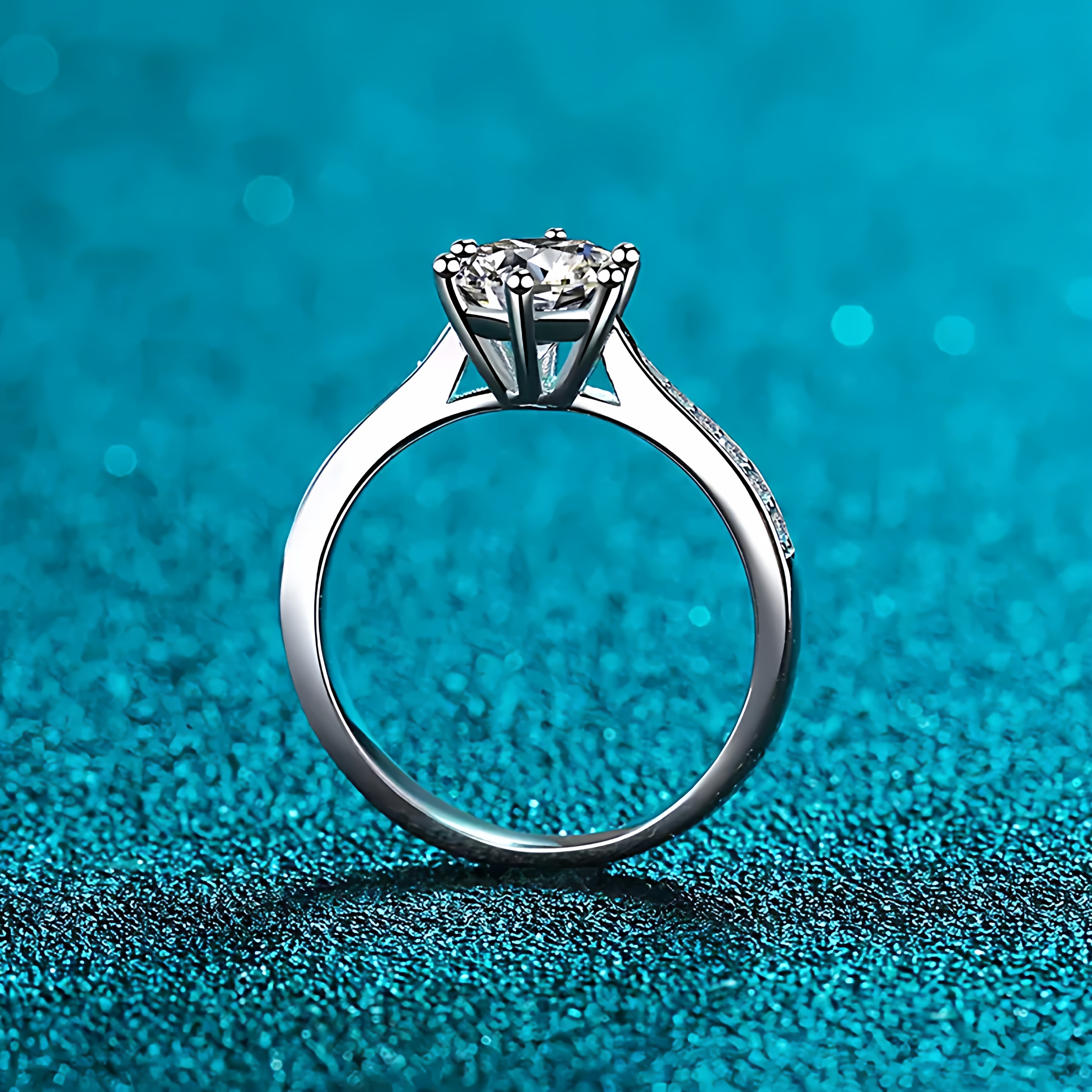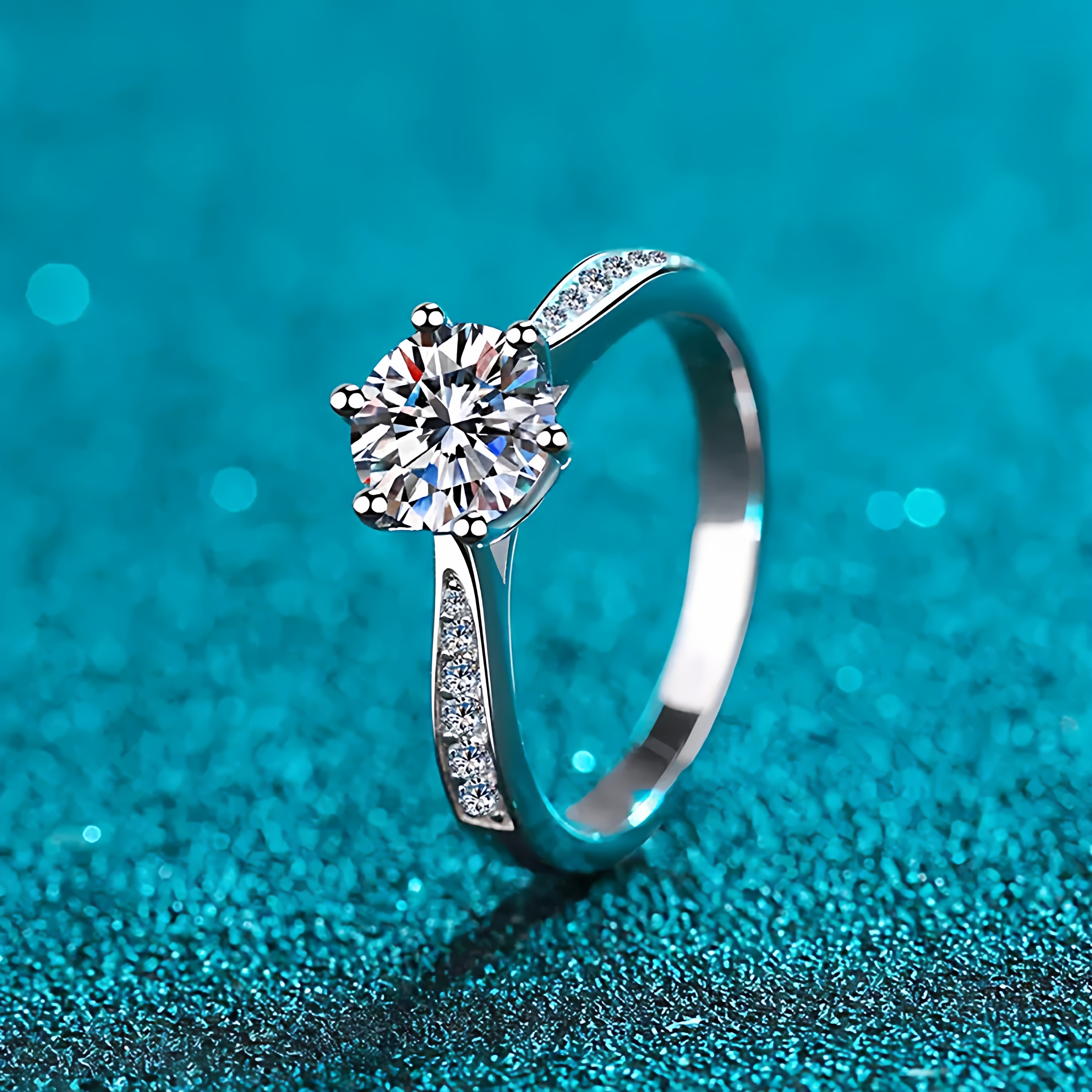 正品莫桑石钻戒六爪微镶情侣纯银戒指求婚结婚表白生日礼物送女友
