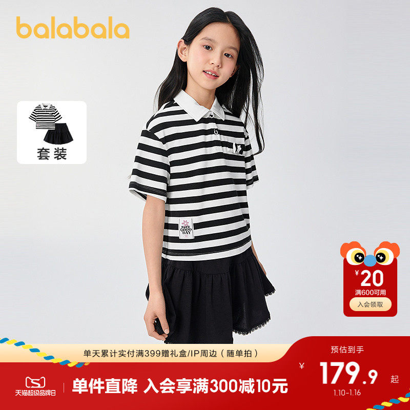 巴拉巴拉女童套装夏季儿童装2025新款夏装大童两件套时尚百搭洋气