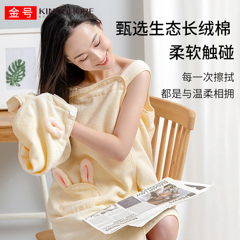 金号纯棉浴巾女夏天可穿可裹家用吸水2025新款全棉高级浴裙干发帽