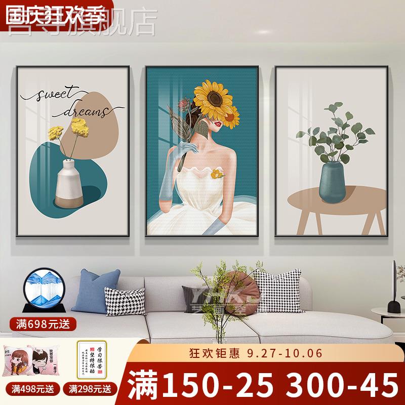 客厅装饰画现代简约沙发背景墙挂画三联画2023新款壁画餐厅卧室画