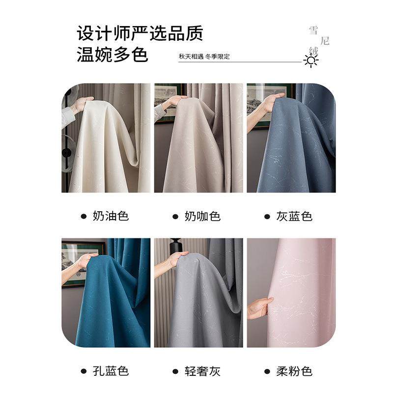 新款法式轻奢加厚雪尼尔窗帘客厅卧室简约高遮光雪尼尔窗帘成品