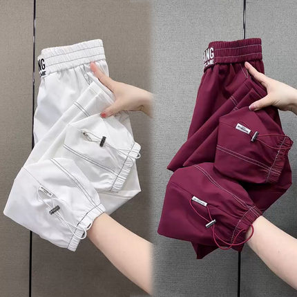 夏季速干冰丝九分裤女薄款宽松显瘦束脚哈伦裤透气百搭休闲运动裤