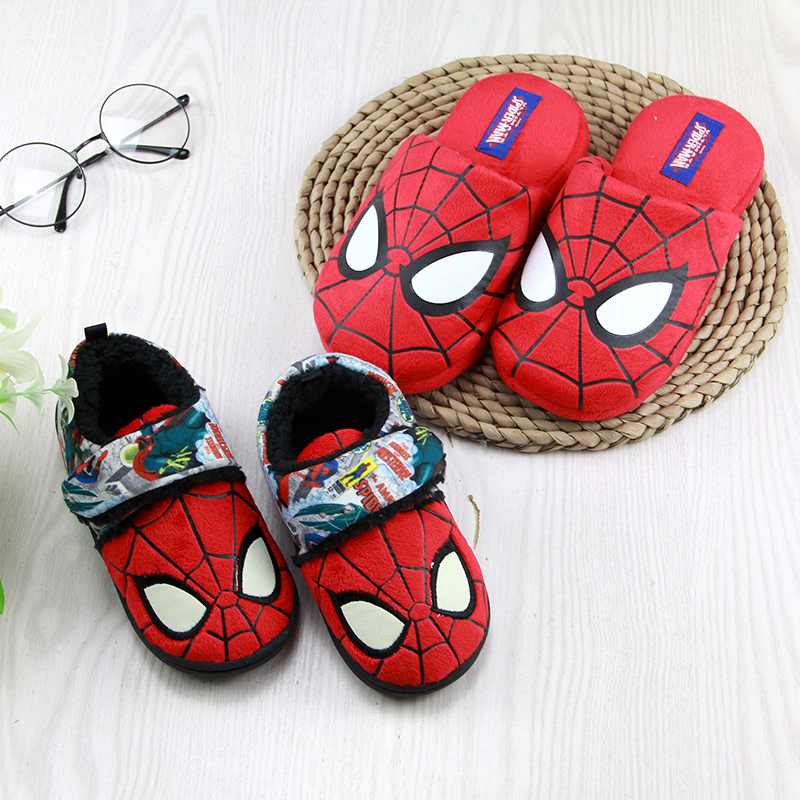 蜘蛛侠超人棉拖鞋儿童春秋亲子中大童幼儿园居家室内防滑小男孩冬