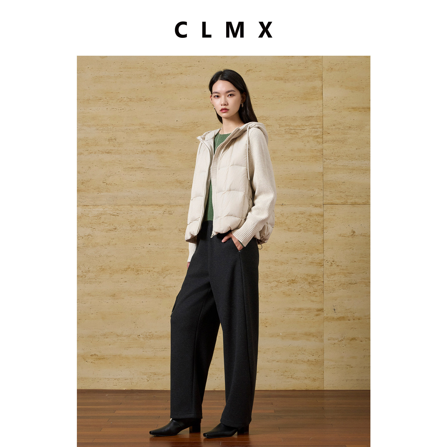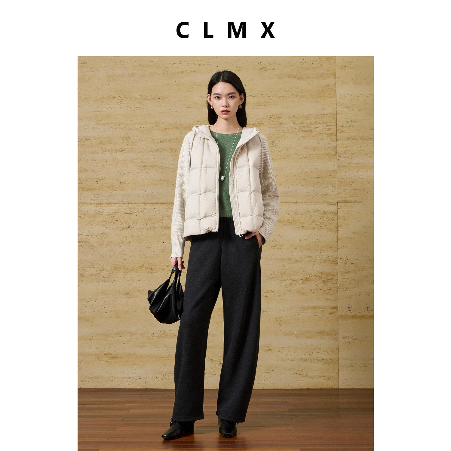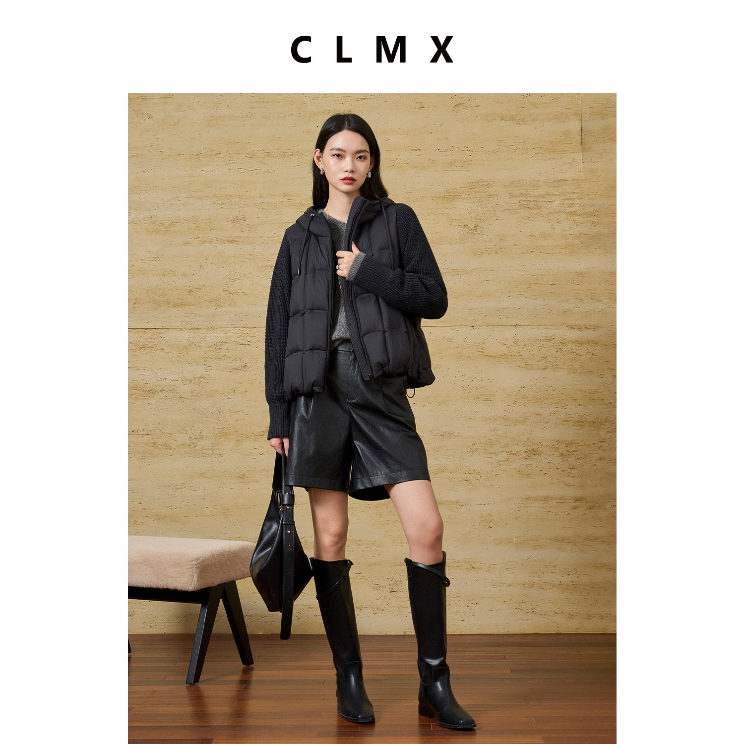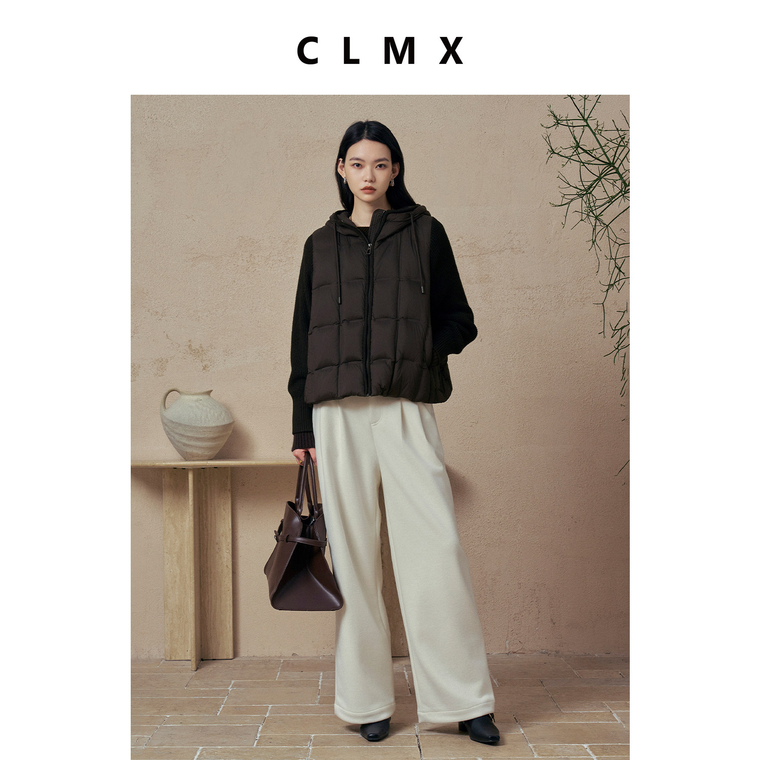 CLMX连帽拼接毛织长袖抽绳绗线羽绒服雾光感锦纶面料秋冬上衣