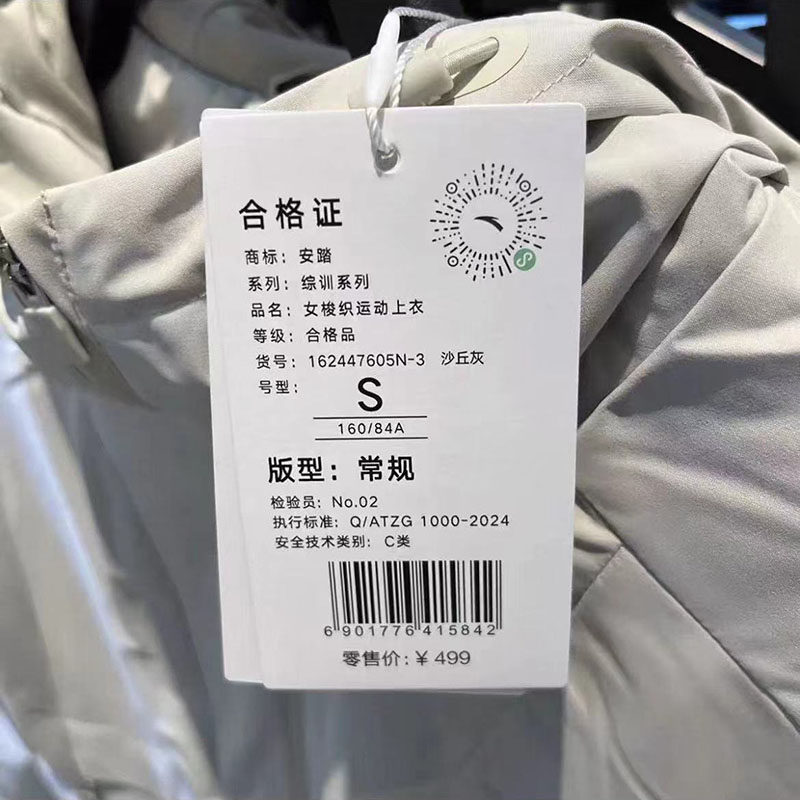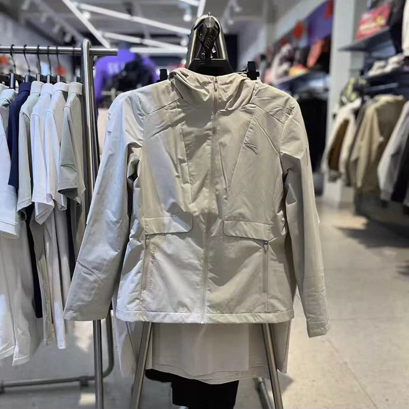 安踏保暖连帽外套女防风衣服冬新款防泼水梭织运动上衣162447605N