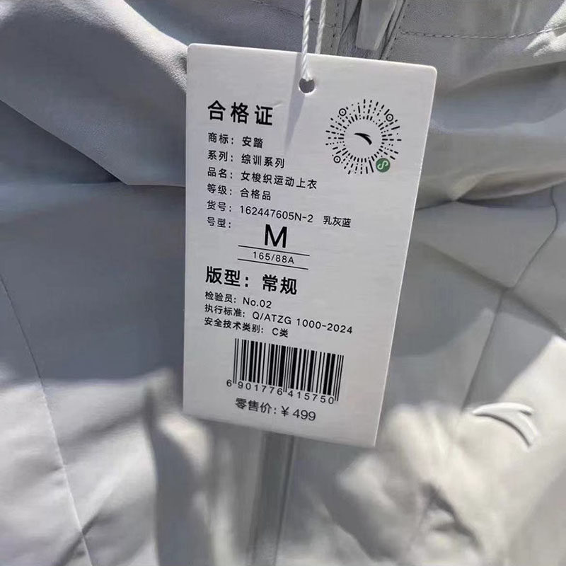 安踏保暖连帽外套运动上衣