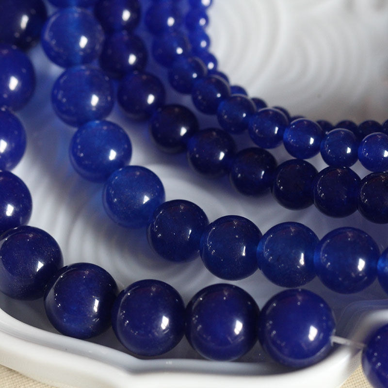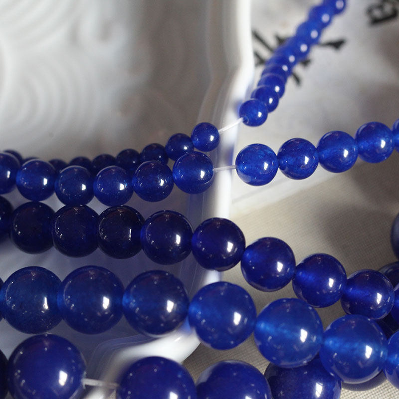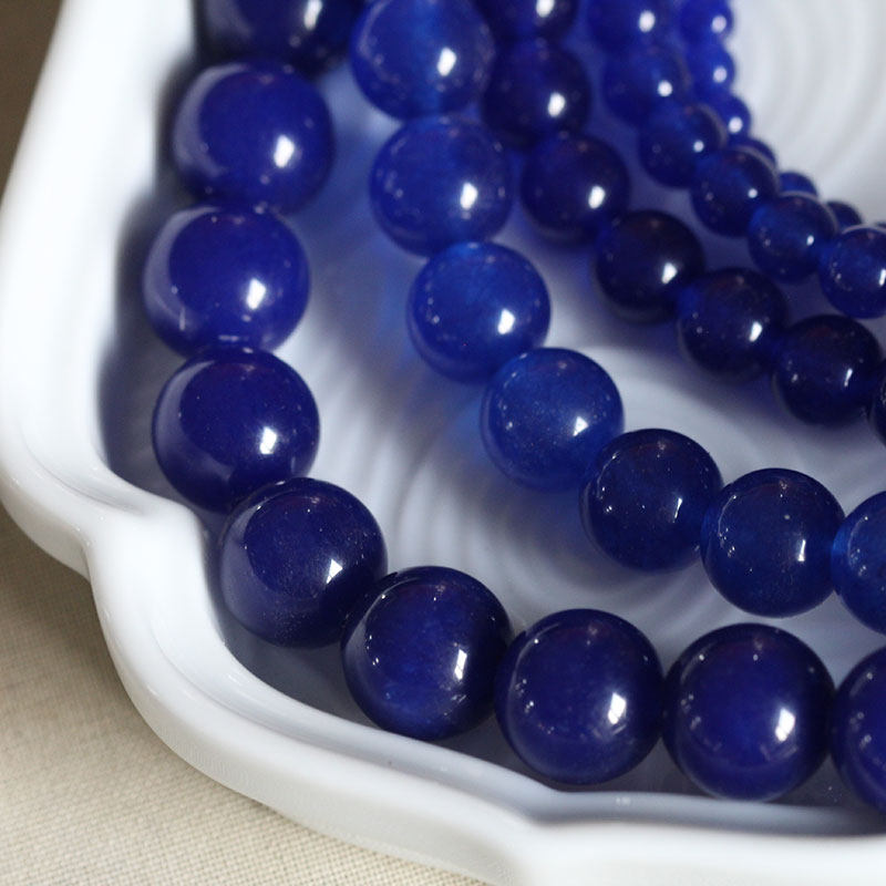 古风DIY饰品配件*发簪*手链*散珠*宝蓝色深蓝色玉髓圆珠项链璎珞