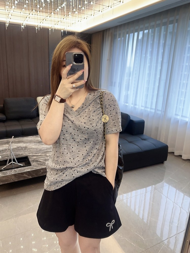经典波普风 大码女装胖mm2025年秋夏装新款v领宽松短袖半袖t恤